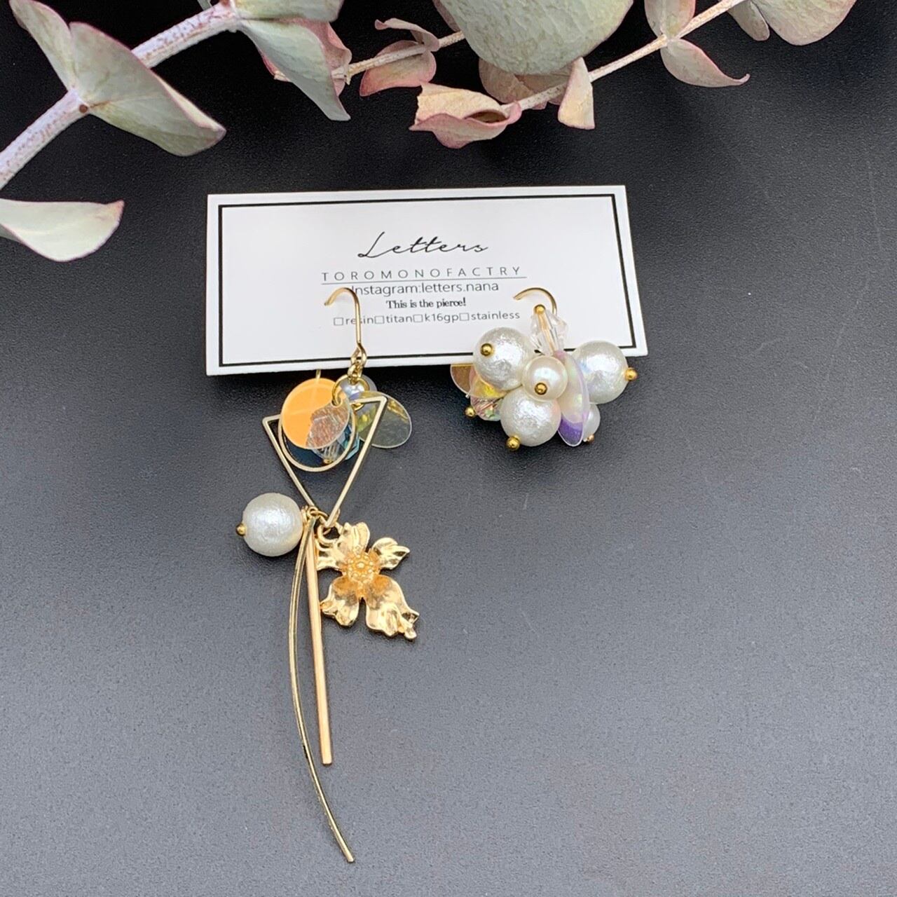 letters 【商品説明】 フラワーモチーフが可愛らしいピアスです。